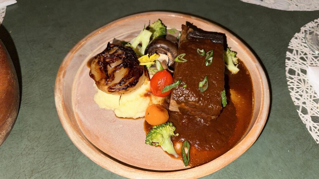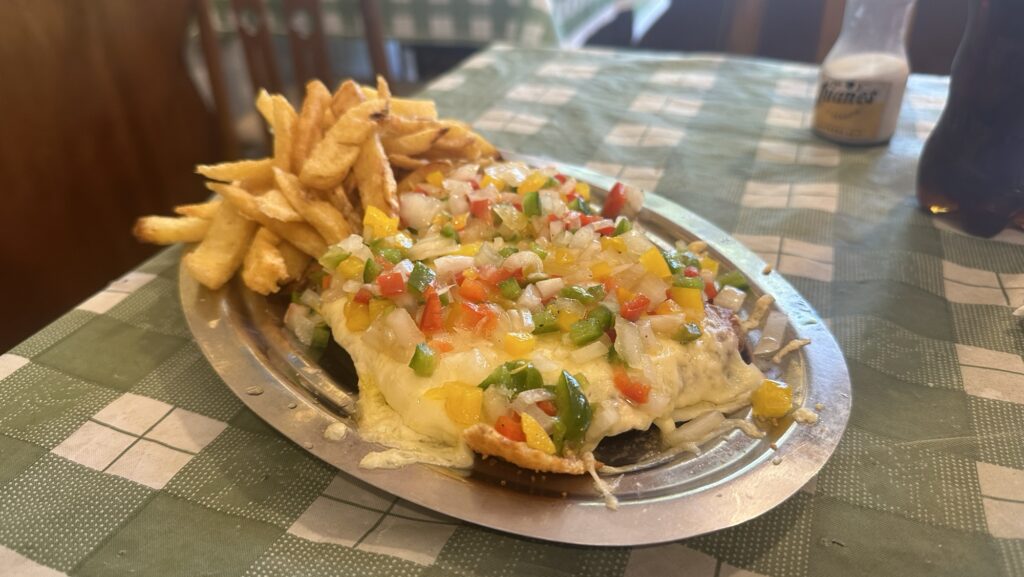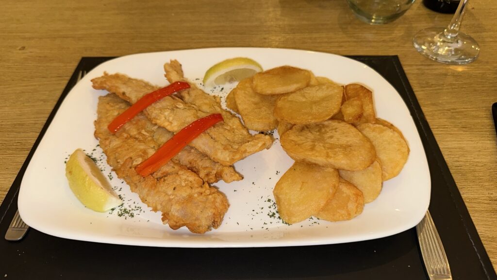 La siguiente escala fue en Milo Restaurante, conocido por su enfoque en platos frescos y de alta calidad. Opté por la trucha a la romana, una elección que no me defraudó. El pescado, de textura suave y sabor delicado, estaba rebozado a la perfección. Acompañé el plato con una copa de vino blanco local, que realzó aún más los sabores y convirtió la experiencia en un deleite para el paladar.