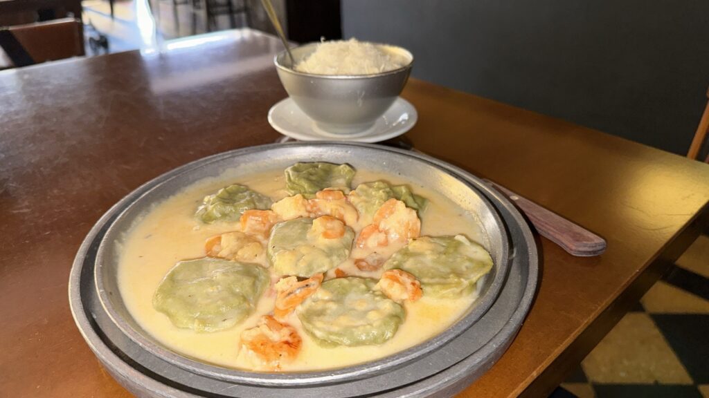 En Andi Restaurante, la propuesta fusiona lo tradicional con toques de autor. Me decidí por los sorrentinos de salmón con crema de camarones, y puedo afirmar que fueron los mejores que he probado en mi vida. La pasta casera, rellena de salmón fresco, se complementaba maravillosamente con la suave y sabrosa crema de camarones. Una combinación que refleja la creatividad y maestría culinaria del chef.