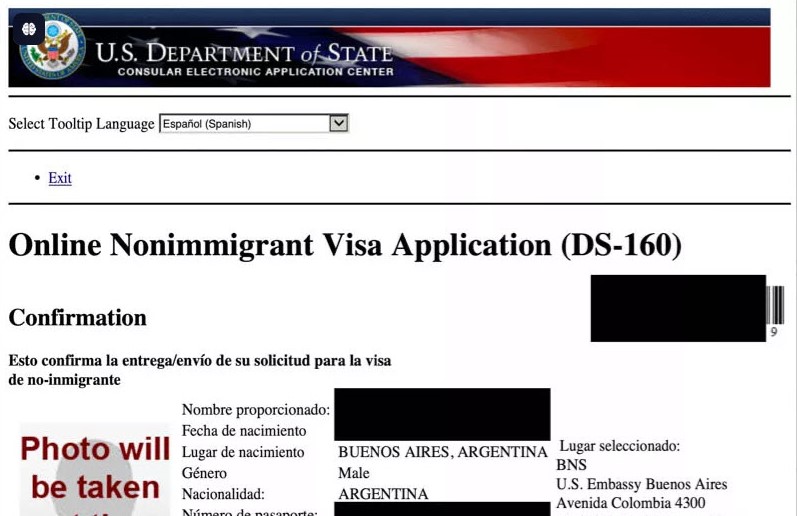 • Formulario DS-160 completo: Este es el formulario de solicitud que se llena en línea.
